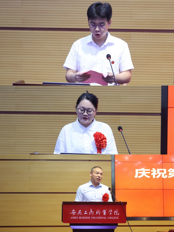 应用工程学院陈志毅同志代表新进教师,会计学院余想花、办公室胡多军同志分别代表受表彰对象发言。