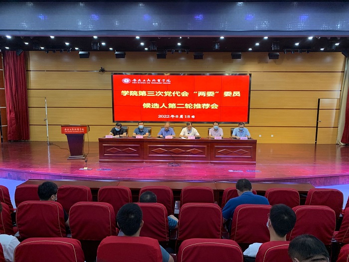 8月18日下午,学院在学术报告厅召开第三次党代会“两委”委员候选人初步人选第二轮推荐会。党委书记齐建平出席会议并讲话,党委副书记、院长李雪主持会议,院领导陈行、黄继胜、胡捍东、陈章奇出席会议,党员中层领导干部、各党总支(直属党支部)委员、基层党支部书记参加会议。