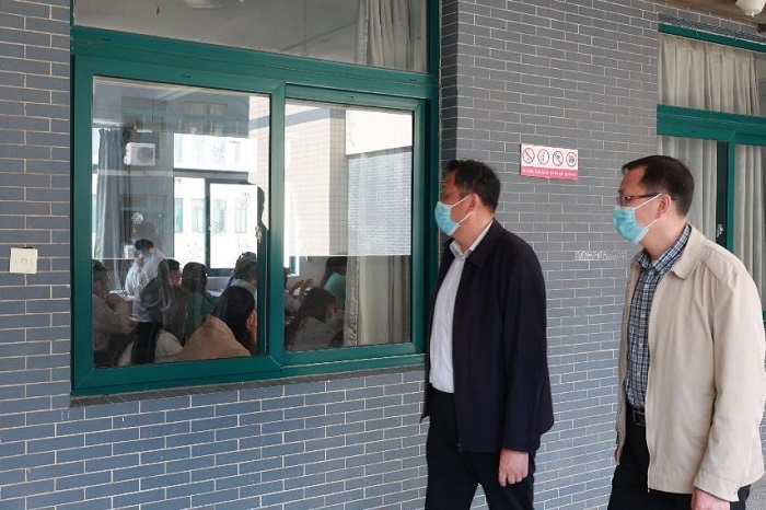 教学巡查后,学校领导来到核酸检测新场地,慰问一线工作人员和志愿者,实地查看核酸采样点区域分布、后勤服务保障、现场秩序维护、防控措施落实等情况,并现场协调解决存在的困难问题。学校领导强调,一要思想上高度重视,疫情防控事关大局,各部门要协同配合,认真把控每个环节,确保疫情防控各项工作落实落细;二要进一步优化现场条件,落实好关心关爱措施;三要密切关注师生的健康状况,全面织密扎牢疫情防控网。(撰稿人:赵雪梅 审核人:周新春)