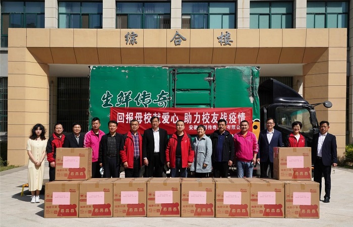 安徽生鲜传奇商业有限公司董事长王卫是我校94营销2班校友,他领衔创立了生鲜传奇、乐大嘴、乐城等全国知名商业品牌。94营销2班是我校人才培养的成功案例,实行订单培养,校企合作人才培养模式,先后产生了总经理级校友46名,他们均已成为我省商业领域的领军人才。王卫深情回忆了美好难忘的在校生活,他表示,离开母校已26年,对母校的感情越发浓厚,希望这次捐赠能给学校疫情防控工作作出一定的贡献,如今看到母校的发展壮大,由衷地感到自豪,希望今天我们以母校为光荣,明天母校以我们为荣耀。
