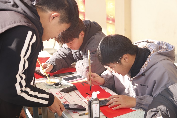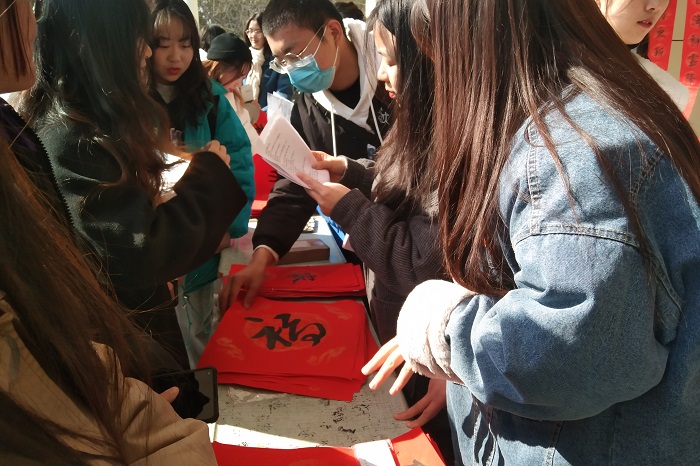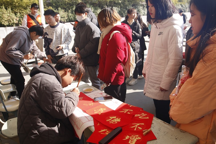 喜庆的红纸为底,黑墨为字,一幅幅平安和谐、吉祥如意的春联在这寒冷的冬日彰显出喜气洋洋的气息。活动现场还推出了猜字谜、朋友圈集赞等方式领取春联和福字、书签,广大师生纷纷前来排队,整个活动秩序井然,现场气氛热烈。师生们纷纷表示,写的春联最有意义,这是送到心坎儿里的祝福。据统计,活动当天共送出春联200余幅。在喜庆的氛围中,让广大师生感受到了冬日里的温暖,也给即将到来的新春增添了浓浓的年味。