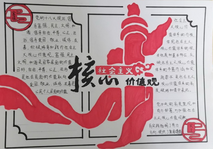 为深入学习贯彻习近平新时代中国特色社会主义思想和党的十九大、十九届五中全会精神,庆祝中国共产党成立100周年,推进党史学习教育,团结引领广大团员青年积极践行社会主义核心价值观,深入推进爱国主义教育。2021年9月,我校开展了 “社会主义核心价值观主题宣传月”活动。