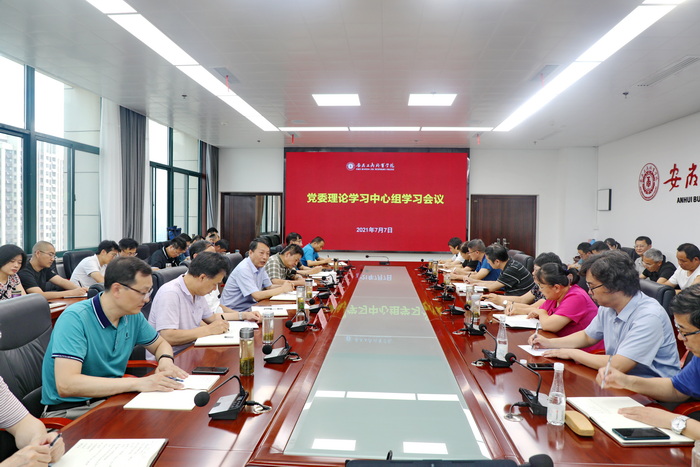 7月7日下午,安徽工商职业学院党委理论学习中心组召开学习扩大会议,深入学习习近平总书记在庆祝中国共产党成立100周年大会上的重要讲话精神。党委书记孙永主持学习并讲话,在肥校领导屈山林、汪贤武、张智清、黄继胜出席,全体中层干部参加学习。