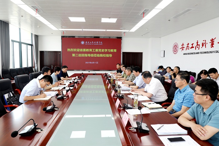 6月11日上午,省委教育工委党史学习教育第二巡回指导组组长、省委教育工委二级巡视员朱乃韬一行4人来我校调研指导党史学习教育工作,校领导孙永、李雪、屈山林、汪贤武、张智清及学校党史学习教育领导小组成员参加会议。党委书记、学校党史学习教育领导小组组长孙永主持会议并作工作汇报。