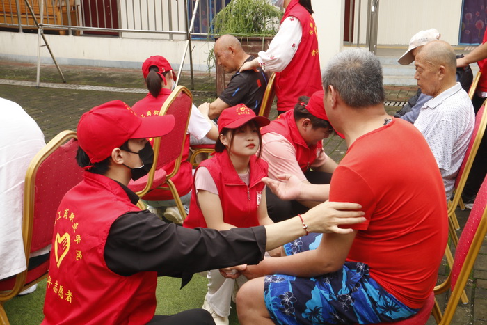 九点整,敬老、助老活动正式展开,同学们各有分工。有的带老人做一做手指按摩,有的陪老人们拉拉家常、讲讲笑话,给老人们带去欢笑和快乐;有的帮助老人打扫卫生,捶捶背,使老人变得轻松;有的和老人们自由交谈并认真倾听老人们讲述他们那个年代的个人经历,告诉志愿者们今天的幸福生活来之不易。最后,志愿者还陪老人们互动了一些小游戏,每个老人的脸上都洋溢着开心的笑容。陪伴他们度过了一个温馨快乐的周末,火红的小红帽如同散落的一盏盏明灯,点亮了敬老院。