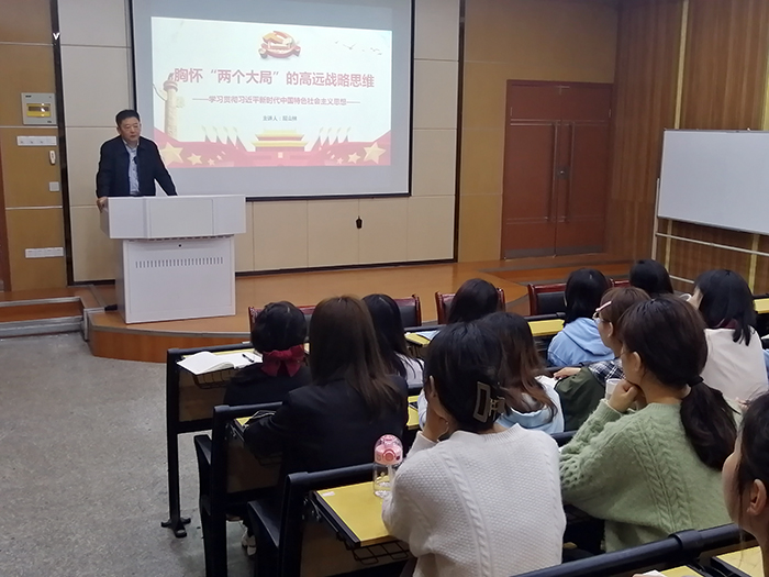 4月22日中午,校党委副书记、党校副校长屈山林在庐阳校区一楼阶梯教室为第三十一期入党积极分子培训班(七班)的学员上了题为《胸怀“两个大局”的高远战略思维----学习贯彻习近平新时代中国特色社会主义思想》专题党课,全体入党积极分子参加了学习。