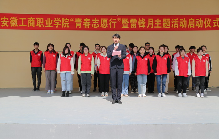 仪式首先由赵艳作动员讲话。她指出大家要统一思想、凝心聚力,身体力行,从身边的点滴小事做起。让大家在“青春志愿行”暨雷锋月系列活动中锤炼品格,以坚定如铁的决心,铿锵有力的步伐永远跟党走,为建设更加和谐美好的安工商贡献青春力量,用实际行动向建党100周年献礼!接着,各二级学院党总支书记为志愿者代表授予绶带,屈山林为“学雷锋”志愿服务队授旗。随后,校青年志愿者协会会长谭勇代表全体志愿者向全校师生发出“向雷锋同志学习,广泛参与到志愿服务活动中来,让志愿服务之花成为安工商的风景,让雷锋精神在安工商的传承永不停歇”的倡议。最后,全体人员与安之声合唱团一起合唱《学习雷锋好榜样》,伴随着歌声一起缅怀革命先烈雷锋,唱响雷锋精神。