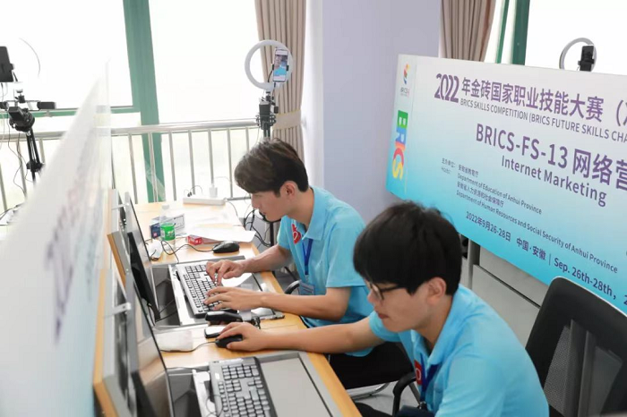 近日,我院2021级电子商务专业的张羽昊、张勇、黄园、以及2021级市场营销专业的周恒杰同学参加了由安徽省教育厅、安徽省人力资源和社会保障厅主办的2022年金砖国家职业技能大赛网络营销赛项安徽省选拔赛。张勇、周恒杰组成的安徽工商职业学院一队获得选拔赛第二名,成功入选安徽省代表团,将参加11月在厦门举办的2022年金砖国家职业技能大赛决赛(国际赛)。另一组选手黄园、张羽昊获得选拔赛第五名。