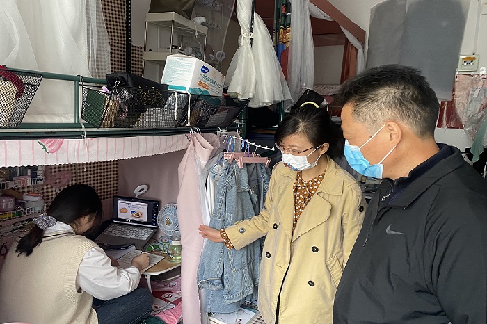 线上教学是学校当前主要的教学形式,为更好保障线上教学质量,了解学情,4月29日下午,旅游学院院长傅绪明,副院长魏芬以及教务科邰磊老师深入寝室,现场检查学生们的学习情况。