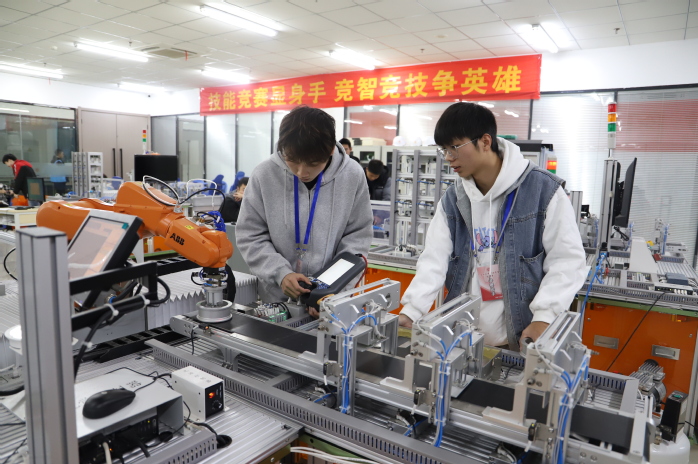 为达到“以赛促学、以赛促教、以赛促改”的目的。赛前,学院认真准备,精心谋划,安排指导教师对学生进行集中培训、指导。技术保障组提前检查比赛场地,对比赛设备进行了检修,确保比赛顺利进行。按照赛项安排,七个赛项分别在各自场地有序展开。赛场上,选手们沉着应赛、细致严谨,展现出了良好的技能素养和心理素质;裁判员敬业负责,裁决公正、公平、专业;纪检监察组认真履职,对比赛各环节严格监督。赛场外,竞赛事务组、竞赛服务组立足岗位,热心服务;宣传报道组工作到位,报道及时,营造了浓郁的技能节氛围。