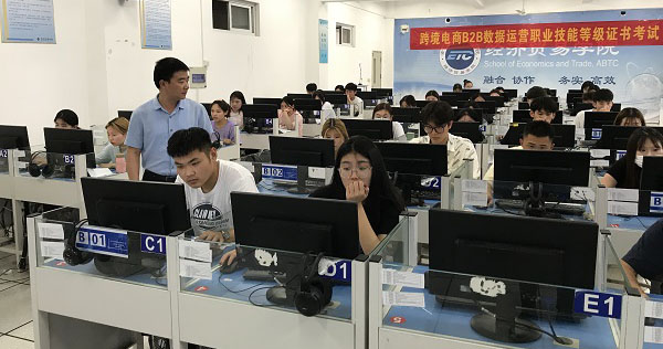 “1+X”跨境电商B2B数据运营职业技能等级证书(中级)考试由阿里巴巴(中国)教育科技有限公司负责实施。我院是该证书安徽省牵头院校、试点院校、考核站点和师资培训院校。学院领导高度重视“1+X”证书考试工作,组织安排对学生的考前动员、考前培训和遴选,组织技术人员进行了软硬件设备调试、考务人员培训等筹备工作。考试严格按照“1+X”证书制度考核管理规定进行,考试过程纪律严明,服务保障到位,系统平台稳定,安排细致妥善,考试严谨有序。