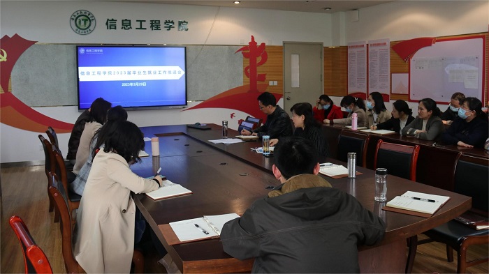 为贯彻落实学校近日召开的2023届毕业生就业工作推进会精神,深入推进学院毕业生实现充分高质量就业,3月29日,信息工程学院在学院会议室召开2023届毕业生就业工作推进会。信息工程学院全体教师参会,会议由学院党总支书记张静雯主持。