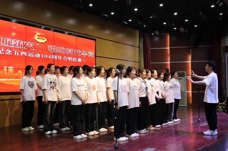 为深入学习贯彻党的二十大精神,纪念五四运动104周年,5月4日晚上,旅游健康学院“青春礼赞新时代”五四大合唱比赛在双凤校区学术报告厅隆重举行。