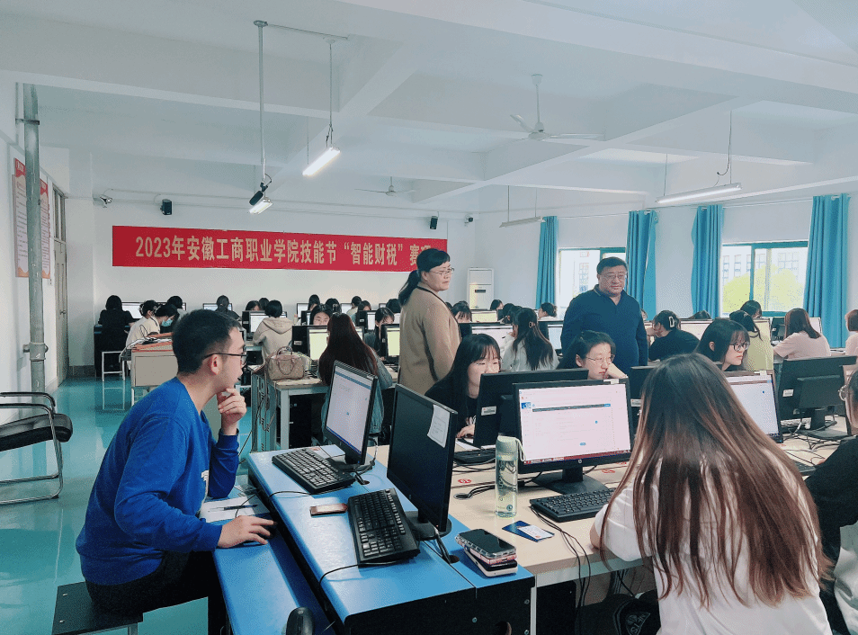 2023年5月24日,安徽工商职业学院技能节—会计学院“智能财税”赛项决赛在教学楼KJ301机房顺利举行,共有64名参赛选手同台竞技,展示技能,会计学院党总支书记赵艳和院长高克智莅临现场进行指导。初赛已于5月17日举行,共122人参与角逐,竞争十分激烈。专业教师黄国瑞和吴志明担任“智能财税”赛项的指导教师。
