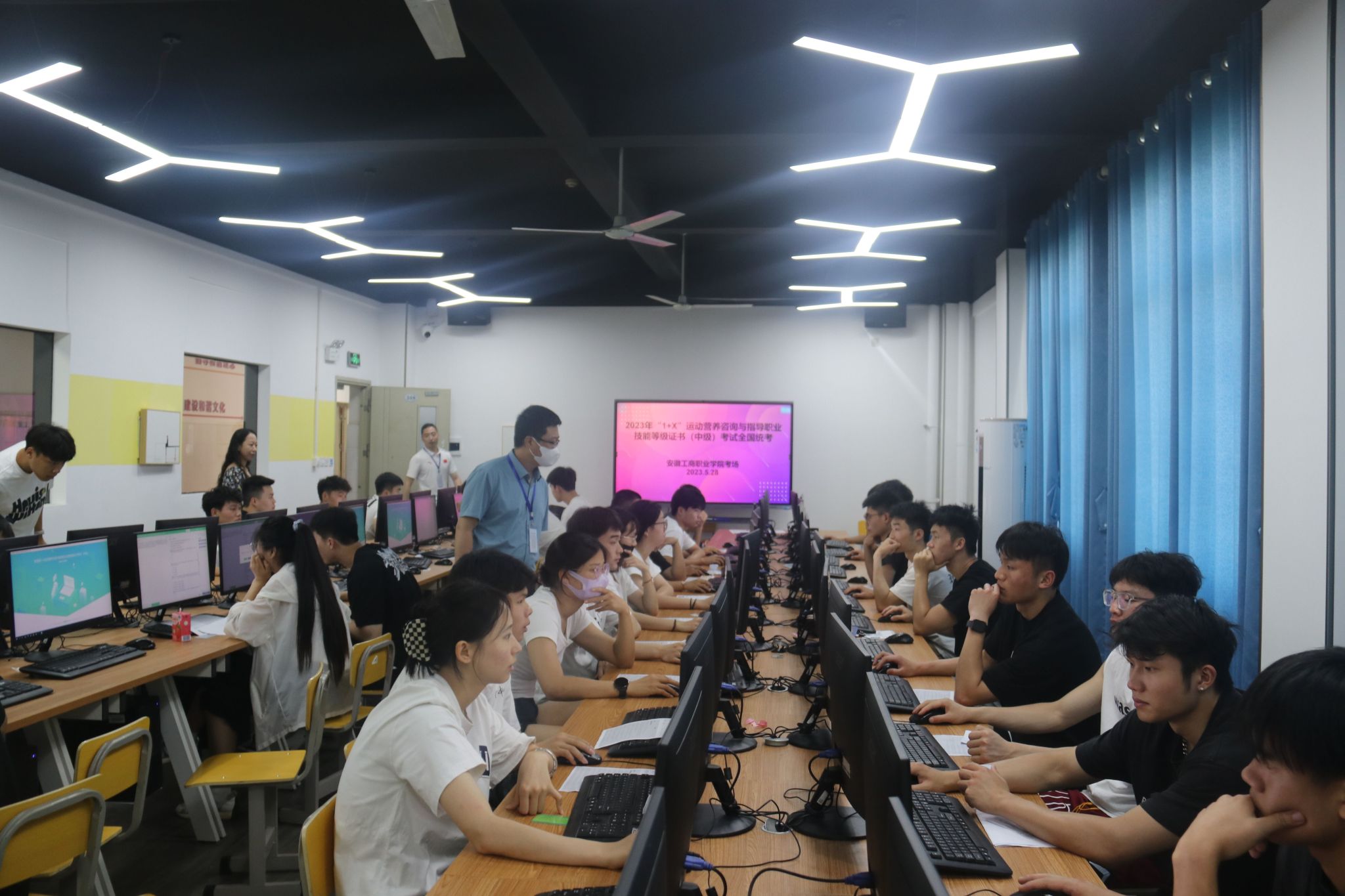 2023年5月28日,旅游健康学院2021级健身指导与管理专业94名学生参加“1+X”运动营养咨询与指导职业技能等级证书(中级)全国统考,在兄弟部门的大力支持下,考试顺利完成。