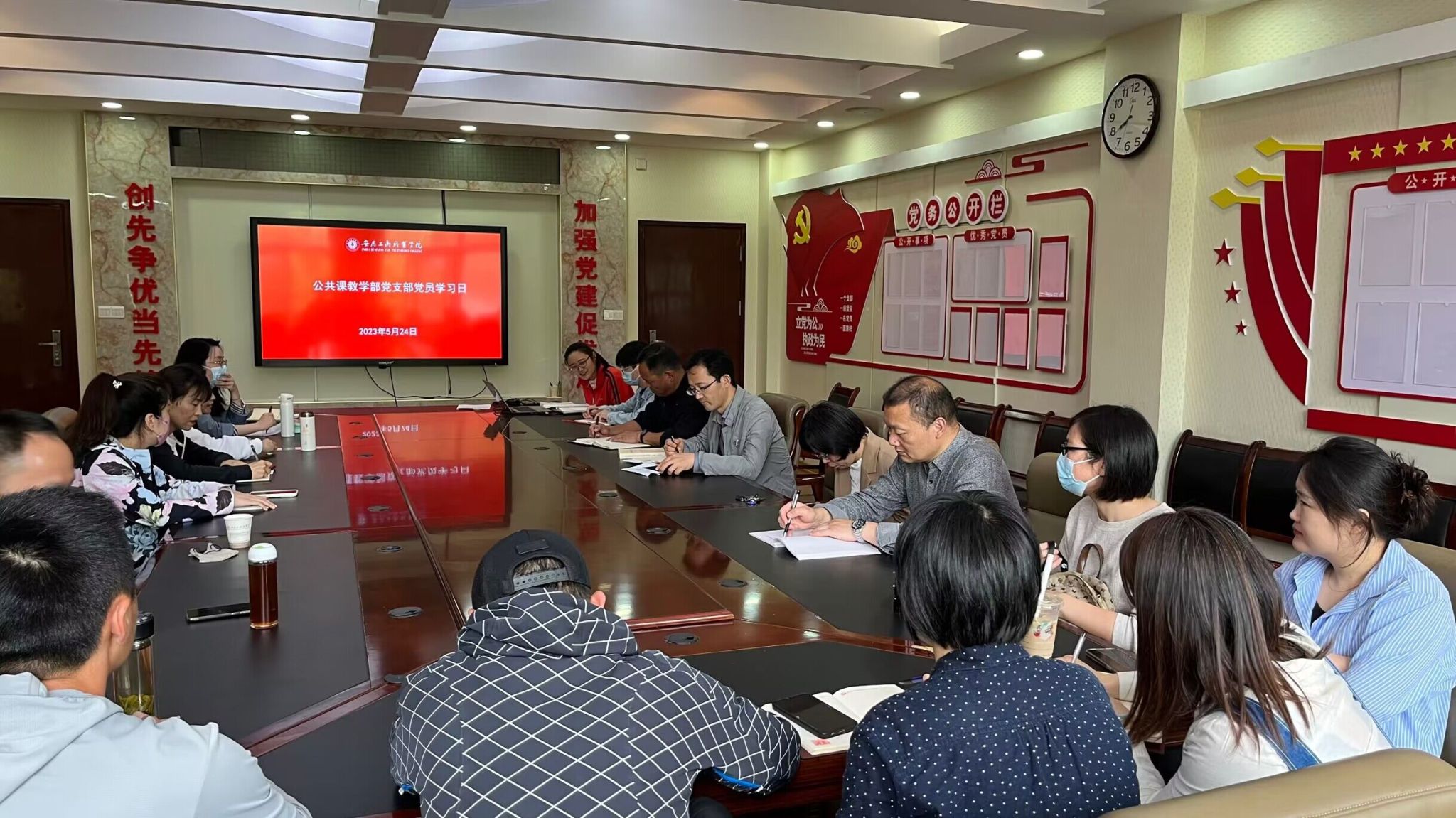 为推动学习贯彻习近平新时代中国特色社会主义思想主题教育不断走深走实,5月24日,公共课教学部党支部开展主题教育学习会暨“三问”交流会,马克思主义学院党总支书记葛成飞、公共课教学部主任杨忠慧、马克思主义学院党总支副书记公共课教学部副主任刘守旺出席会议,支部全体党员参加活动,交流会由刘守旺主持。