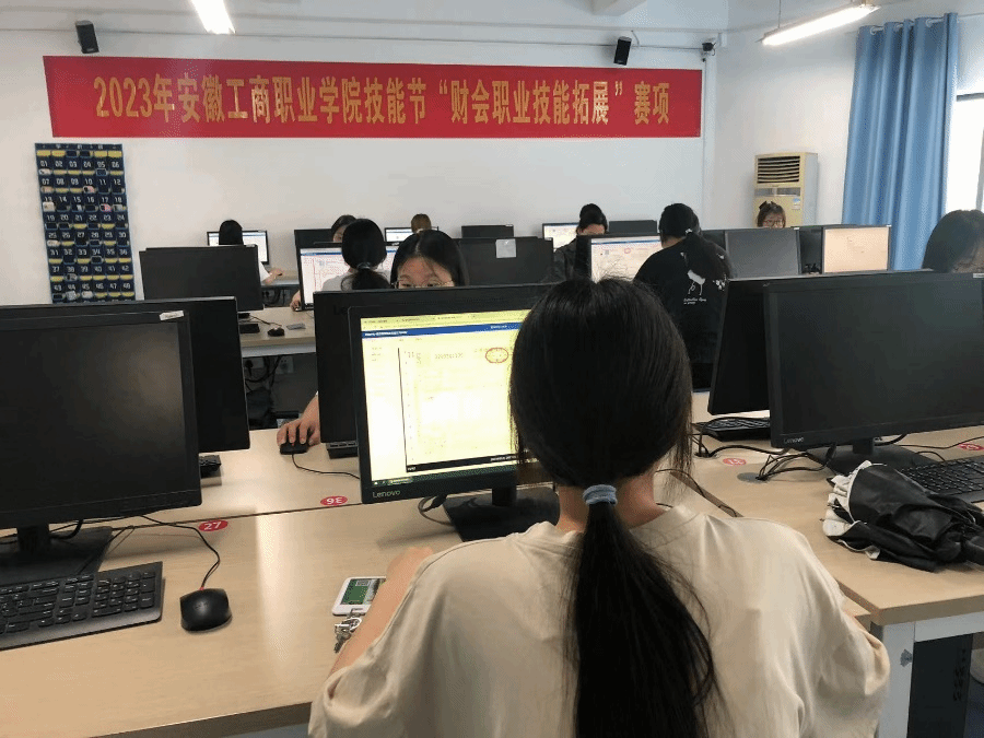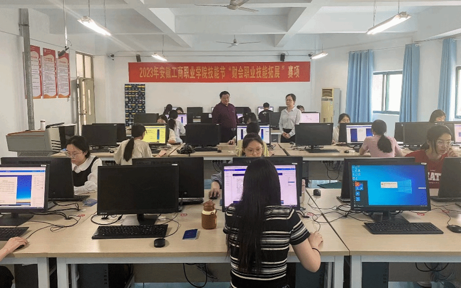 2023年5月26日,安徽工商职业学院“财会职业技能拓展”赛项决赛在双凤校区会计学院KJ201实训室举行,会计学院院长高克智亲临决赛现场指导。