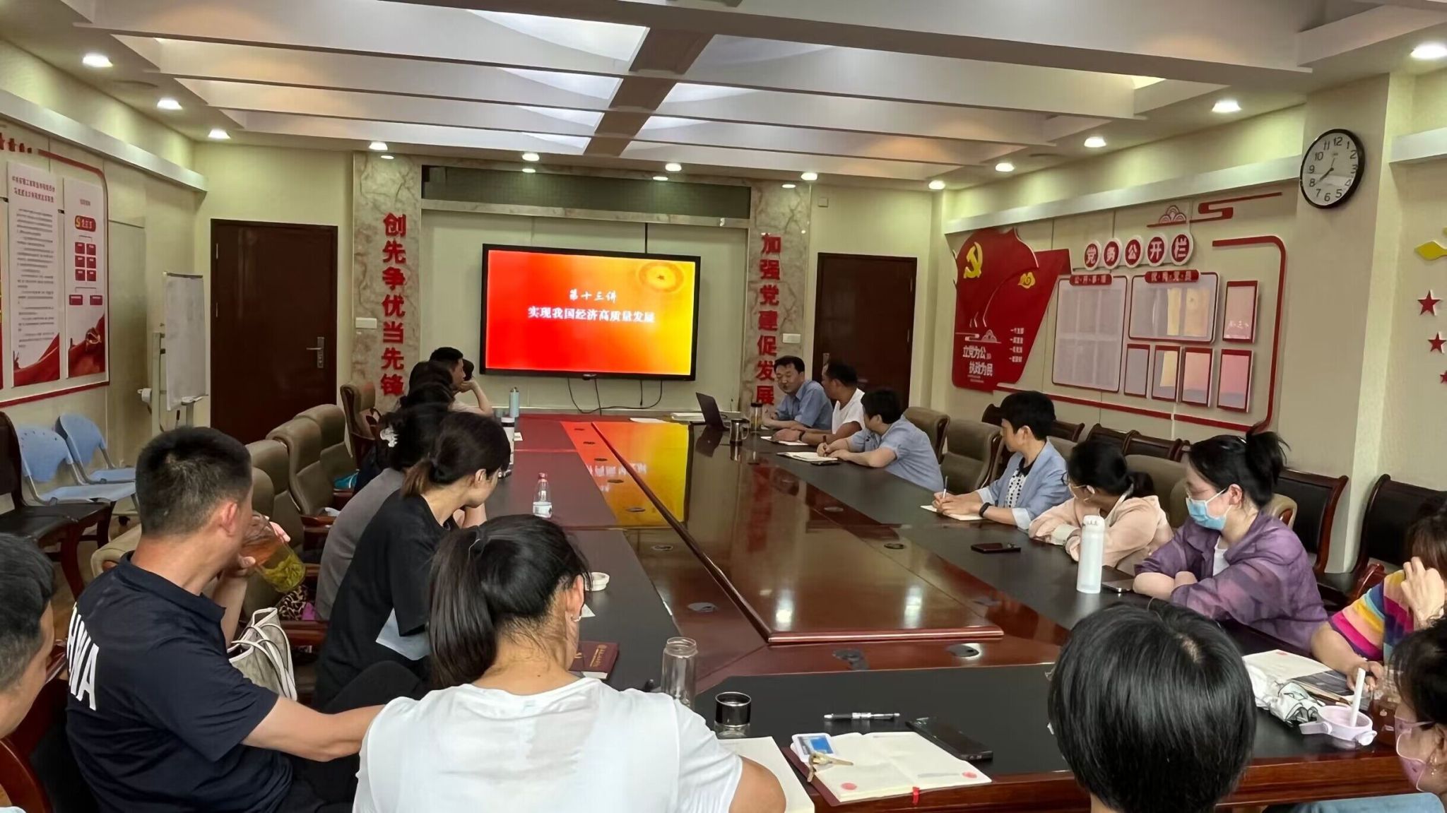 会上,朱小龙做了题为《实现我国经济高质量发展》的专题党课,朱小龙根据中国经济发展历程和世界经济形势,系统解读了习近平总书记关于实现我国经济高质量发展的重要论述,深刻阐释了习近平新时代中国特色社会主义思想的深邃内涵。专题党课主题鲜明、内容丰富、旁征博引、深入浅出,既有理论的高度、思想的深度,又联系实际、生动活泼。让听课人员在涵养正气、淬炼党性、提升思想、指导实践等方面受益匪浅。