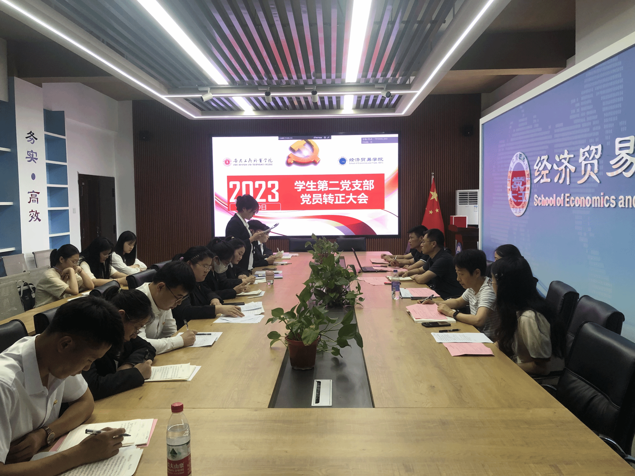 6月10日,经济贸易学院学生第一党支部、第二党支部召开预备党员转正大会,党总支书记边昊到会指导,会议分别由学生第一党支部书记朱清涟和第二党支部书记陈夺主持,全体正式党员参加会议。