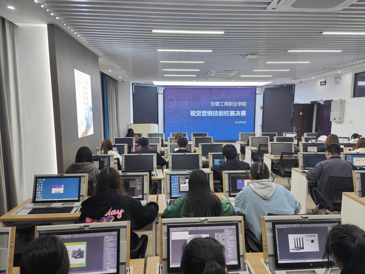 4月19日,安徽工商职业学院2023年技能节网络营销赛项决赛在管理学院306内容运营中心实训室拉开帷幕,2021级、2022级电子商务、网络营销与直播电商、连锁经营与管理专业共22位同学参加了校赛决赛阶段的比拼。学生通过PPT的形式展示了个人制作的H5页面海报和设计的微信公众号。同学们通过平时的专业训练和刻苦练习,展示了各自精心制作的网络营销作品。