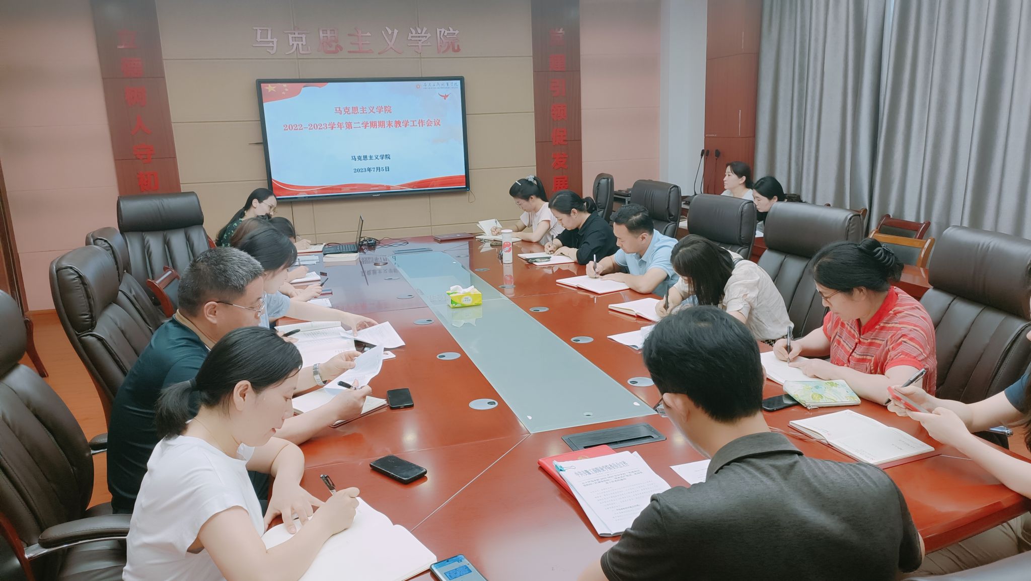 7月5日,马克思主义学院在明德楼会议室召开2023年春季学期期末教学工作会议,总结学期工作,布置期末及暑期教学工作。马院全体授课教师参加会议。会议由马克思主义学院党总支书记、院长葛成飞主持。