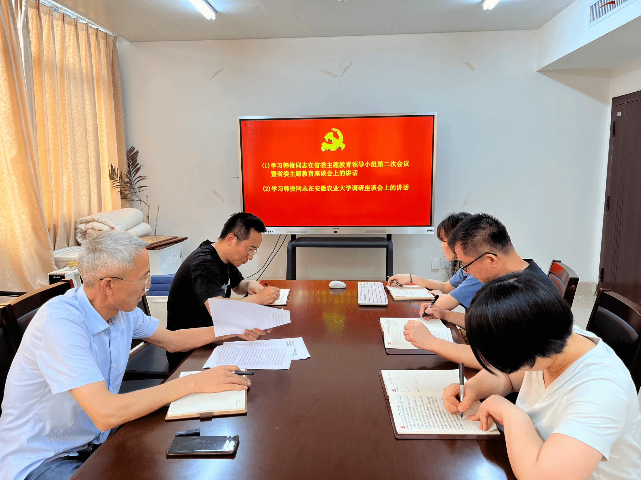 会上,各支部组织观看了省委书记韩俊在安徽农业大学调研座谈会上的讲话、省委书记韩俊在省委主题教育领导小组第二次会议暨主题教育座谈会上的讲话的相关视频。座谈会中韩俊强调,要深入学习贯彻习近平总书记关于主题教育的系列重要讲话和重要指示批示精神,推动我省高校主题教育不断走深走实,以高质量主题教育推动高校高水平发展,为全面建设现代化美好安徽筑牢人才智力支撑。要深入学习贯彻习近平总书记重要讲话重要指示批示精神,认真落实中央主题教育领导小组第二次会议和有关工作座谈会精神,着力在深入、扎实上下功夫,在以学铸魂、以学增智、以学正风、以学促干上见实效,做好学习贯彻习近平新时代中国特色社会主义思想深化、内化、转化工作,推动我省主题教育进一步走深走实。与会人员围绕学习主题,结合自身工作实际展开交流研讨,并结合各自岗位职责,从思想、作风、能力等方面查找存在的问题,确定提升方向,细化落实举措。