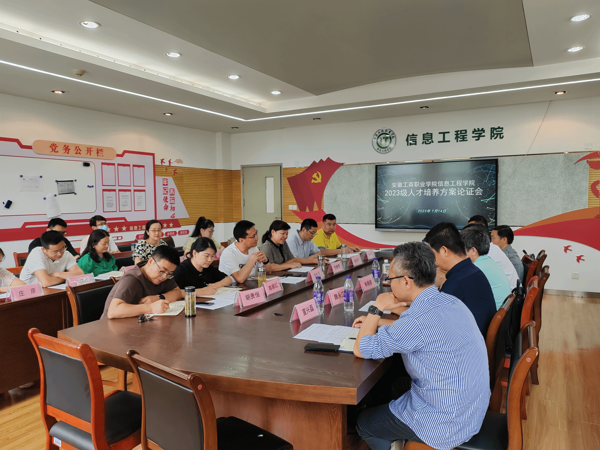 为进一步贯彻落实党的教育方针,深化产教融合,全面提高人才培养质量,根据《安徽工商职业学院关于2023级专业(群)人才培养方案制订的指导意见》等文件精神,7月14日,信息工程学院组织召开了2023级人才培养方案论证会。信息工程学院党总支书记张静雯、专业建设指导委员会专家、教研室主任和专业负责人等参加会议。会议由信息工程学院院长范生万主持。