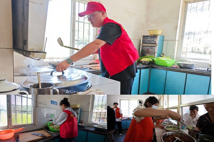 随后,同学们给老人送去了日常生活用品,还帮助打扫卫生、清理垃圾,敬老院焕然一新,老人们笑着说:“像是打扫干净要过年的感觉”。烹饪工艺与营养专业的学生还亲自掌勺,起锅、烧油、翻炒,为老人们制作了一顿美味的午餐,大家忙得热火朝天,不亦乐乎,其他同学则陪老人拉拉家常、聊聊天,大家在不知不觉中拉近了距离,往日平静的养老院里也多了许多欢声笑语,队员们一直到老人们开心的吃上饭菜后才和老人们依依惜别。