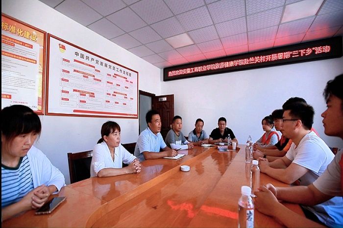 初入兰关村,实践团队得到了当地村干部和群众的热烈欢迎和大力支持。座谈会上,团队指导老师殷宏伟介绍了此行的目的、实践团成员的基本情况以及未来的合作方向。村党支部书记、村委会主任汪宏桥就近年来村基础设施建设、村容村貌治理、特色农业发展、集体经济增收、旅游景点开发、生态环境保护等情况进行详细了说明,为实践团队开展实践活动提供了方向指引。驻村工作队队长、第一书记章登学表示,希望同学们要以此次实践为契机,积极关注、主动参与乡村振兴,助力乡村经济高质量发展。