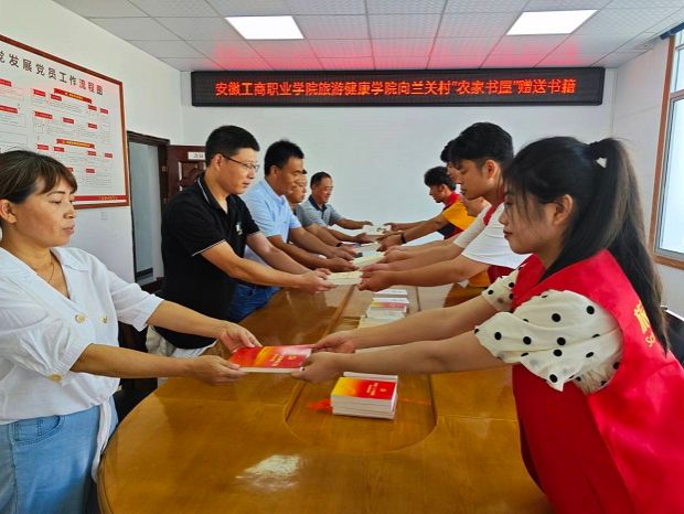 会上,实践团成员还结合所学专业,浅谈了对乡村振兴的思考和实践案例分析,现场氛围十分热烈,大家畅所欲言,为乡村振兴提出好思路、金点子。随后,实践团队向兰关村农家书屋捐赠了部分书籍,双方合影留念。