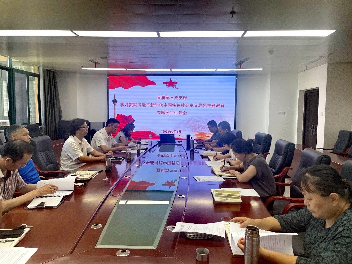 会议通报了直属第三党支部2022年度专题民主生活会整改落实情况。余丙炎代表直属第三党支部支委班子作对照检查,认真查找了在理论学习、政治素质、能力本领、担当作为、工作作风、廉洁自律等六个方面的问题和不足,结合典型案例进行分析,深刻剖析思想根源,提出下一步整改措施。随后余丙炎作个人对照检查,并带头进行自我批评,副处级党员领导干部与支部班子成员一一作全面深刻检视剖析,严肃认真开展批评与自我批评,着力从思想根源上解决问题,与会同志分别作了表态发言。