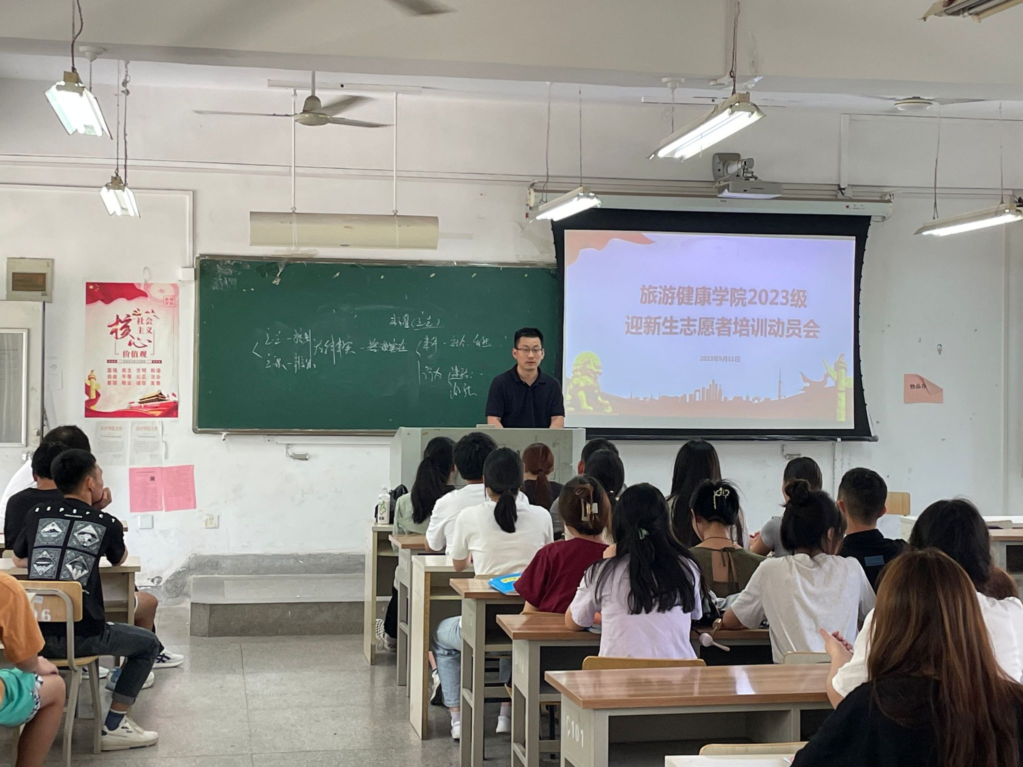 为确保迎新志愿服务在各个环节圆满顺畅,迎新工作高效有序运行,9月11日中午,学院召开2023级迎新志愿者培训暨动员大会,就志愿者相关工作提出了希望与要求,对各项报到工作和岗位职责开展学习培训,60余名志愿者,热情满满、整装待发,用饱满的精神状态迎接新生的到来。