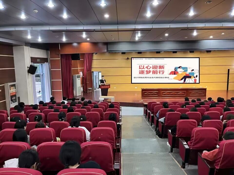 为充分发挥优秀毕业生的榜样示范作用,引导新生更好地进行专业学习、做好生涯规划。9月20日下午,会计学院在学术报告厅举办了“以心迎新、逐梦前行”优秀毕业生代表经验分享会。会议由学生第二党支部书记宋静娴主持,23级大数据与财务管理专业和大数据与会计专业的部分新生参会。