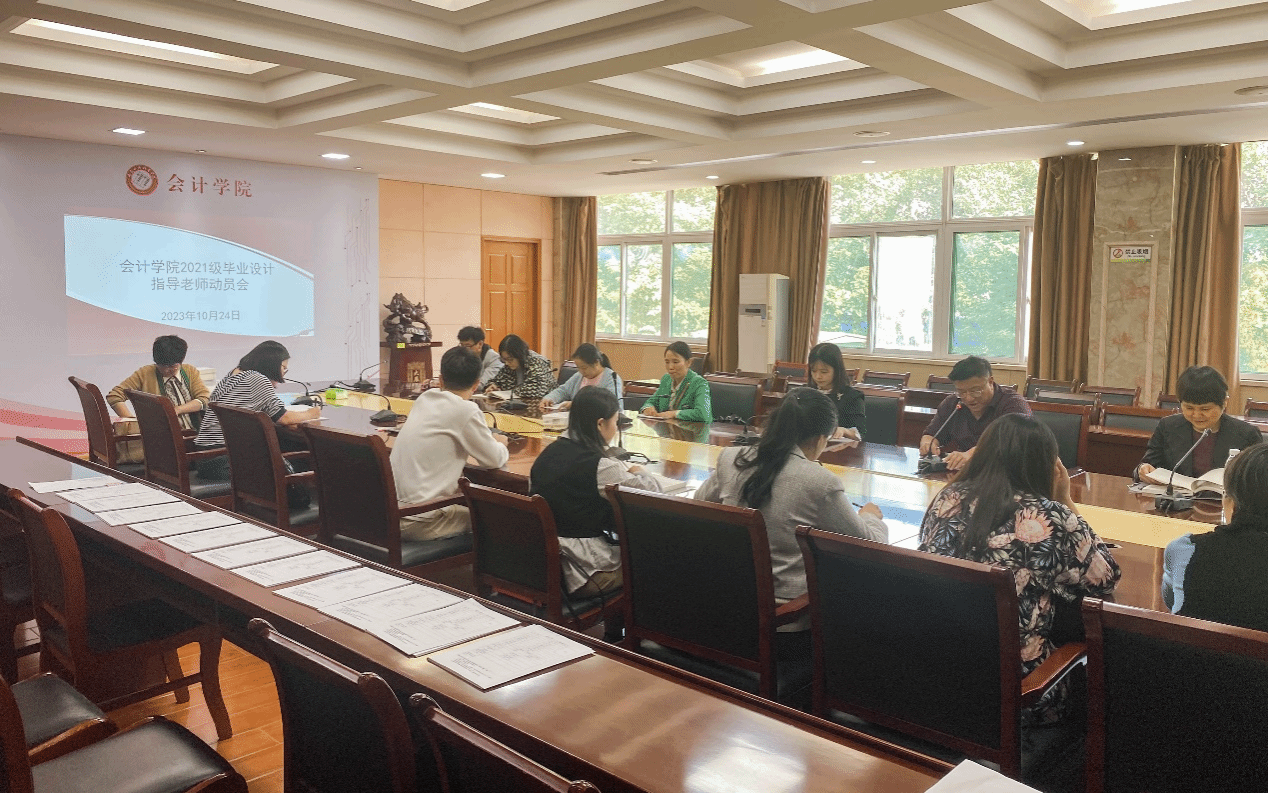 为发挥毕业设计检验教学成果的作用,真正起到检查、检验学生专业实操水平,会计学院于2023年10月24日在明德楼会议室召开了2021级毕业设计指导老师动员会。会计学院院长高克智、副院长费玄淑及毕业设计指导老师参加了会议,会议由高克智主持。