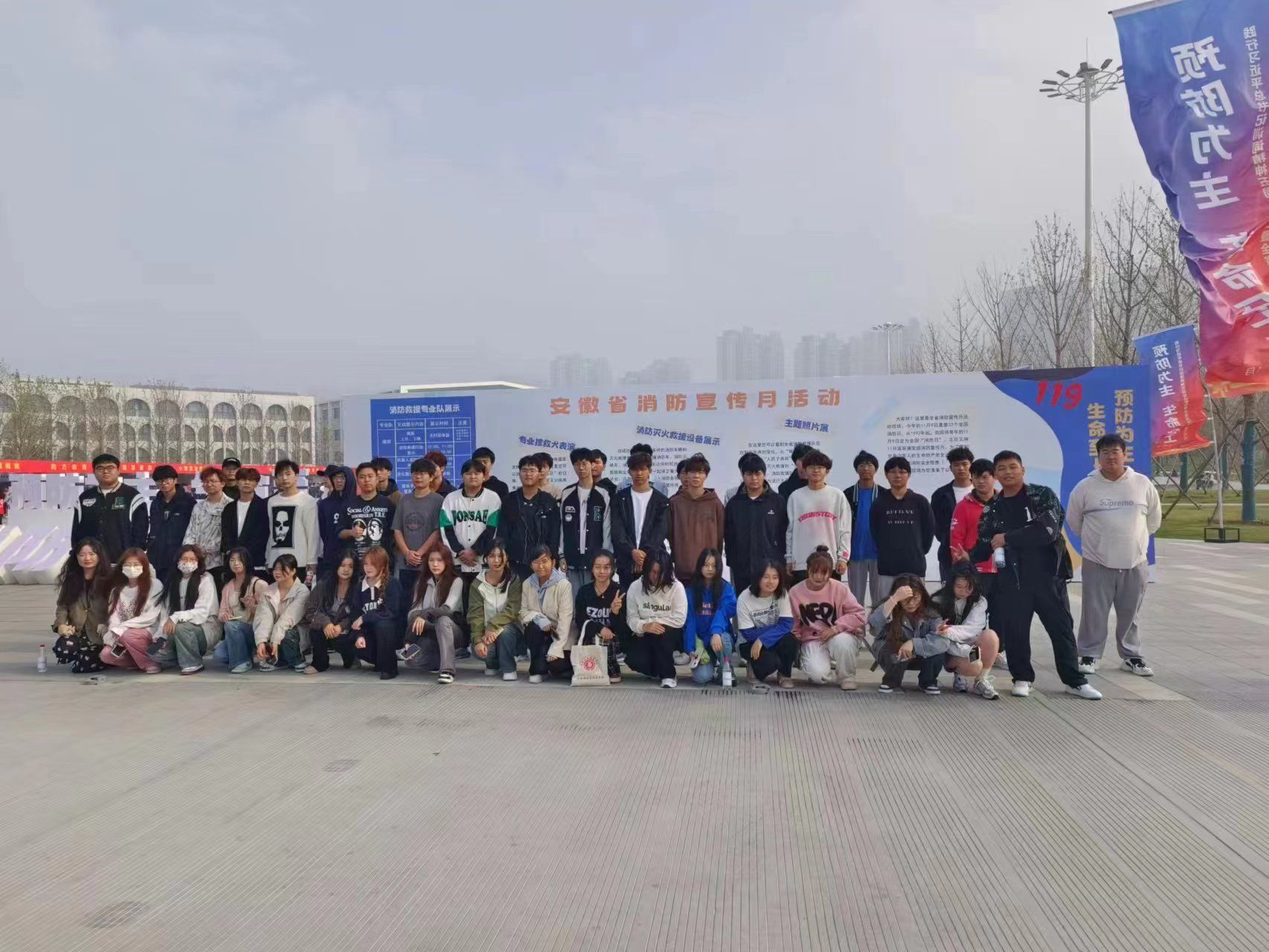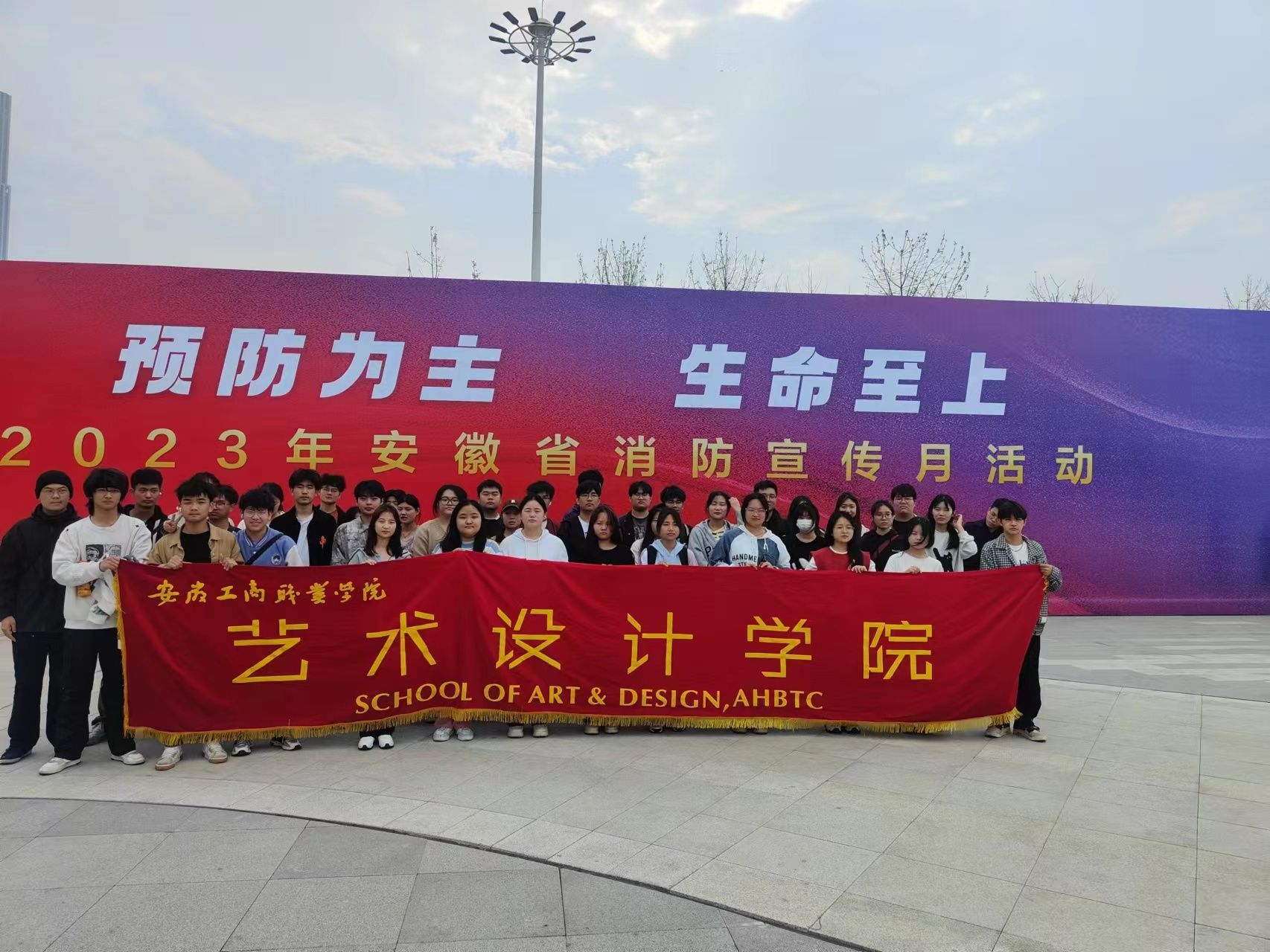 2023年11月5日,保卫处组织艺术设计学院及其他学院师生100余人参加在合肥市骆岗中央公园举行的2023年全省消防宣传月启动仪式。