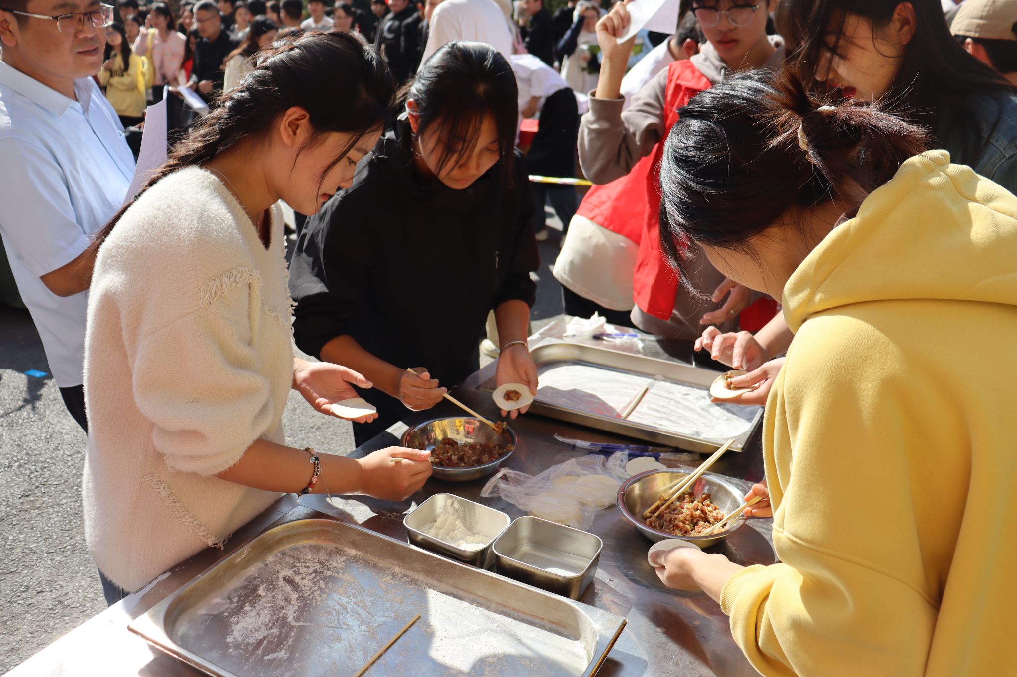 各个班级同学积极参加报名、选拔备战,活动现场,同学们纷纷化身为厨艺高手,亲手包制出各式各样的美味饺子。在比赛现场,同学们手艺娴熟,配合默契,擀皮、包馅、捏边,一道道工序井然有序,气氛热烈而融洽。