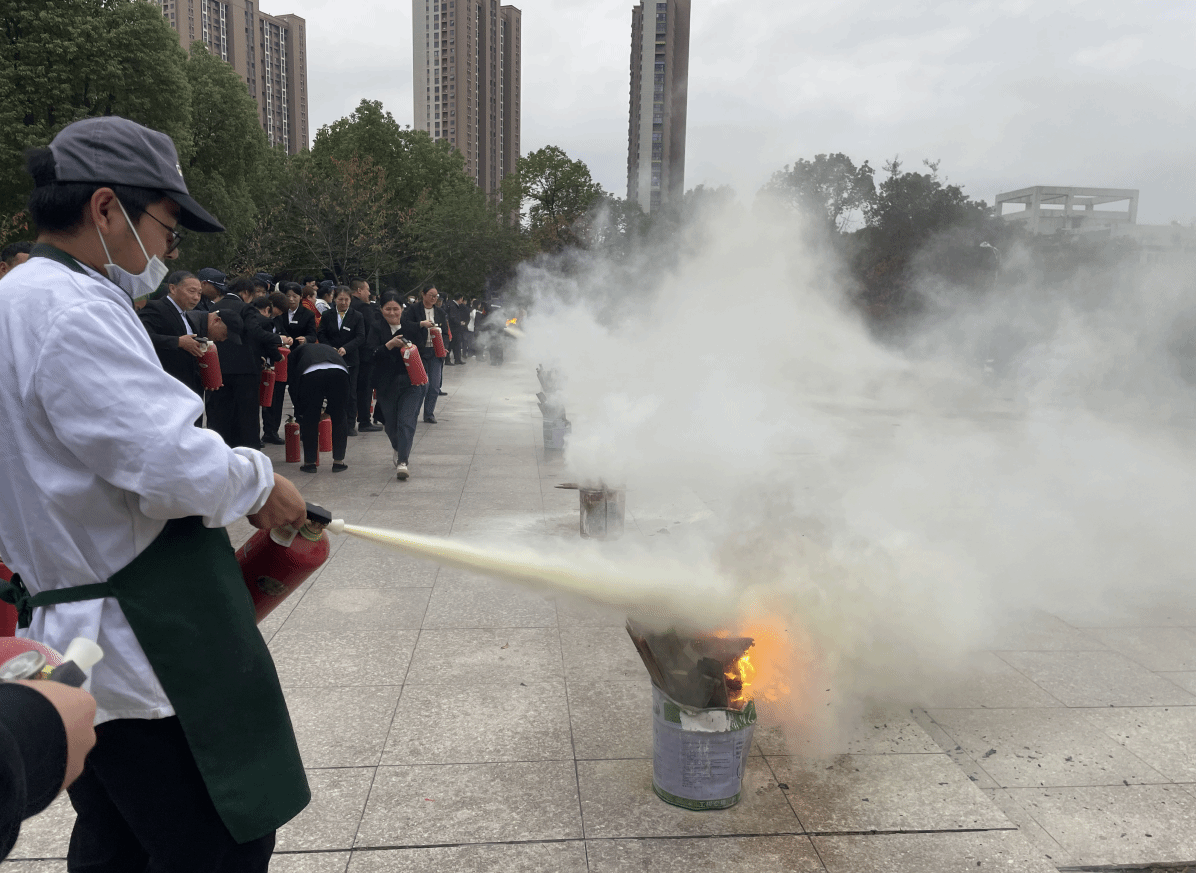 在灭火演练环节,消防教官指导现场师生员工亲手操作,使用灭火器扑灭明火,掌握灭火方法和逃生技能。教官还给师生们展示了消防防毒面具、正压式空气呼吸器、无齿锯等消防器材,并指导同学们试戴消防装备,邀请大家亲身参与实操。