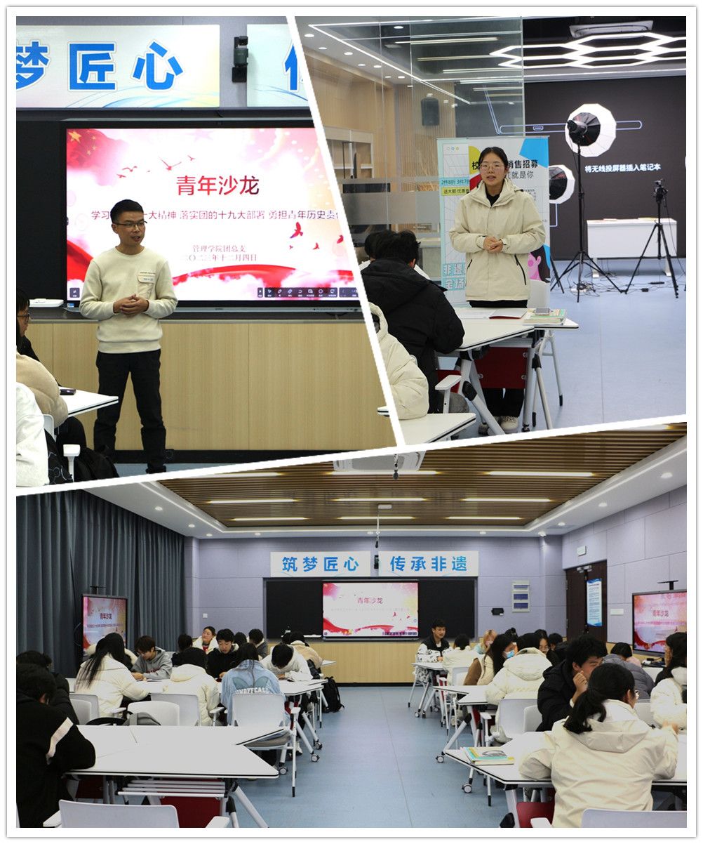 12月4日下午,管理学院在103实训室组织开展“学习党的二十大精神,落实团的十九大部署,勇担青年历史责任”主题沙龙活动。院团总支书记赵昆,以及“青马工程”培训班学员参与主题讨论学习活动。