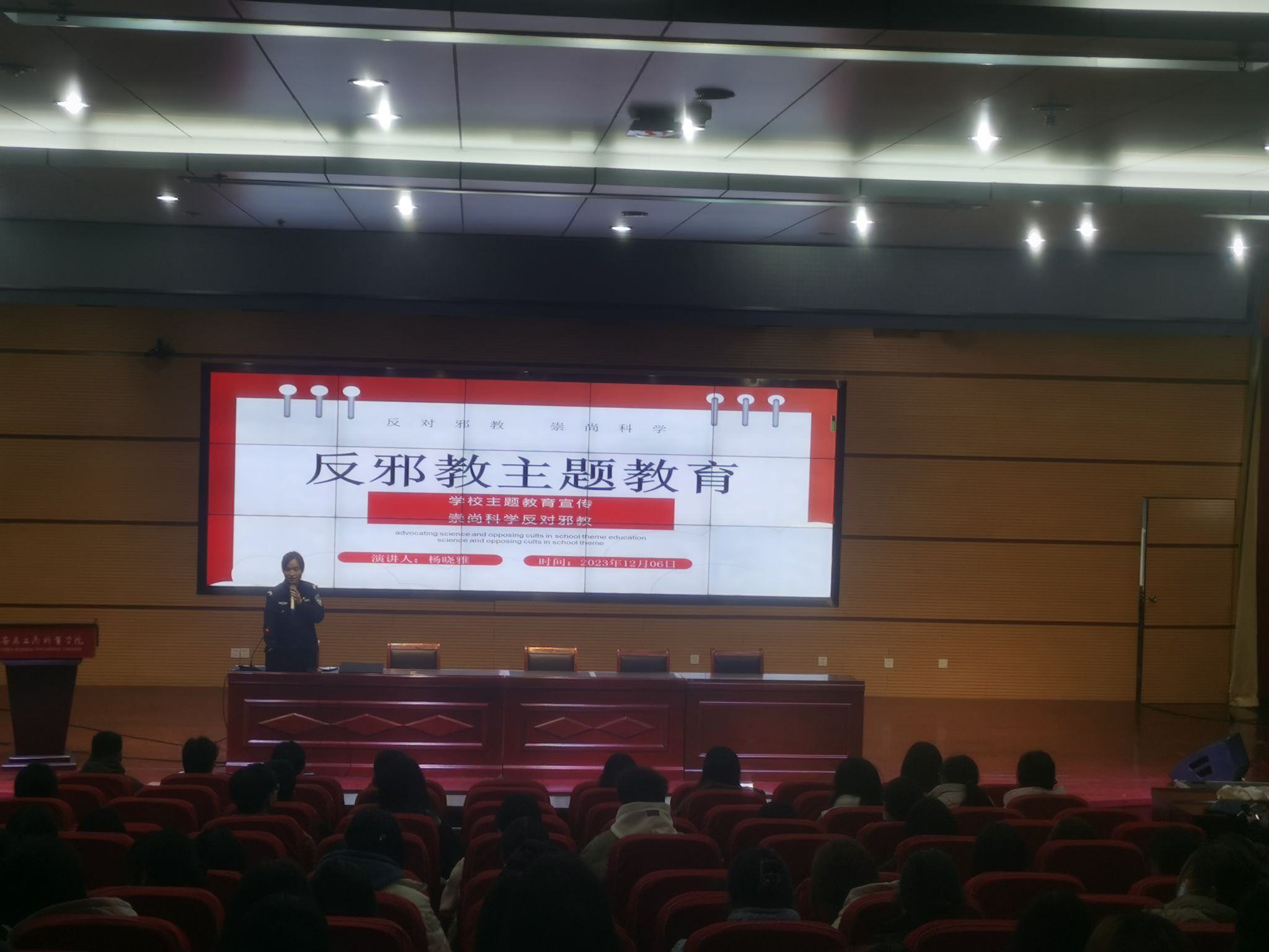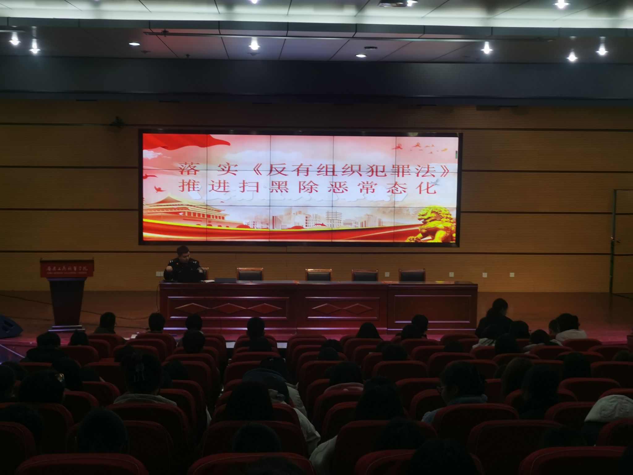 长丰县公安局民警还介绍了扫黑除恶、反邪教、反电诈、反有组织犯罪法等知识,通报了扫黑除恶专项斗争的典型案例,希望同学们坚决与违法犯罪做斗争。同时对邪教的产生、类别和危害进行了分析,讲解了防范邪教的方法,从而自觉远离违法犯罪,维护自身合法权益。