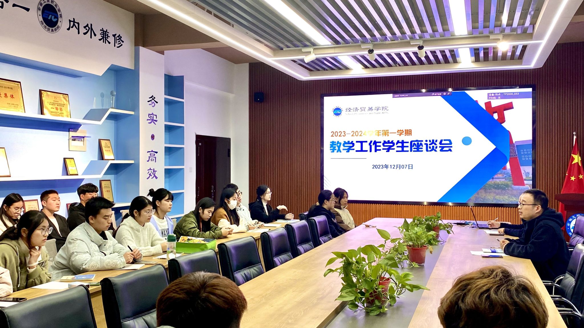 为深入了解教师课堂教学管理情况,切实提高教育教学质量,12月7日,经济贸易学院组织召开2023-2024学年第一学期教学工作学生座谈会。学院2022级、2023级各班级学生代表参会,张键副院长主持会议。