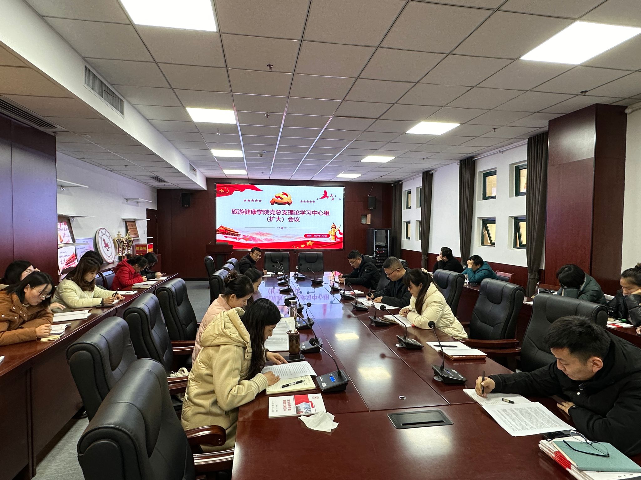 1月4日下午,旅游健康学院召开二级理论学习中心组学习(扩大)会议暨教职工政治理论学习会议,会议由学院党总支书记杨锐主持,全体教职工参加学习。