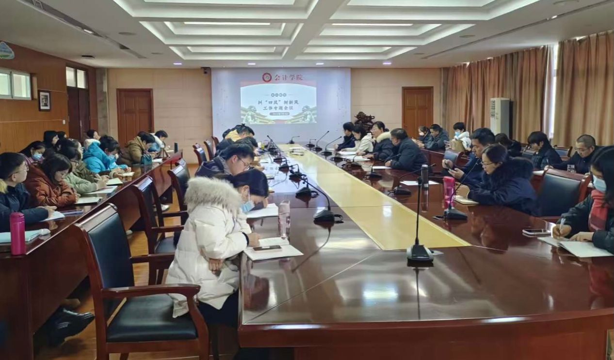 为进一步加强党风廉政建设,筑牢廉洁防线,营造风清气正的文明环境,会计学院党总支于2024年1月3日下午在明德楼二楼二号会议室召开纠“四风”树新风专题会议。会议由党总支书记赵艳主持,党总支副书记、院长高克智,党总支纪检委员、副院长费玄淑和全体教职工参会。