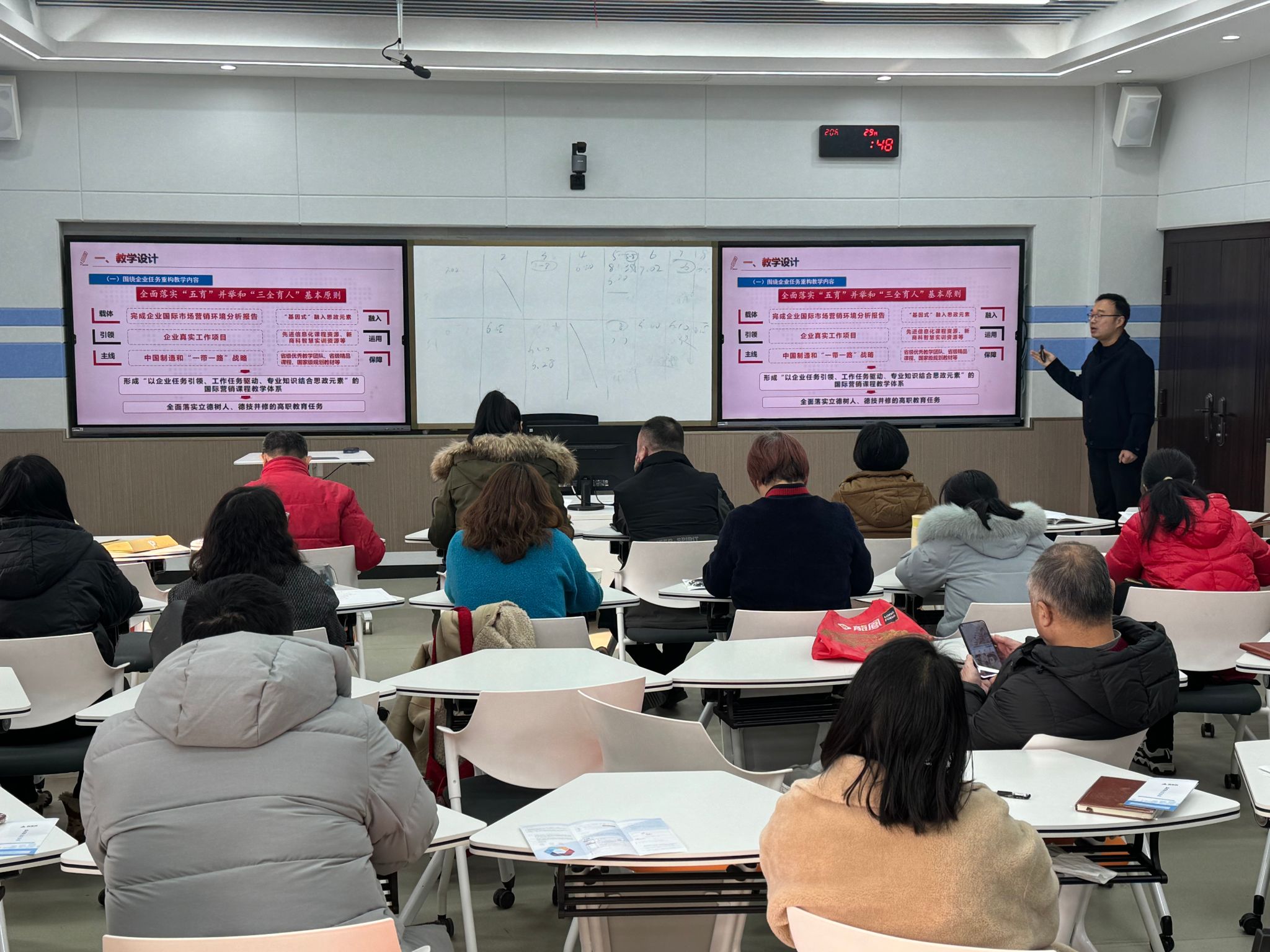 为更好对接校赛及省级以上高职院校教师教学能力大赛,不断提高我院教师的师德践行能力、专业教学能力、综合育人能力和自主发展能力,2024年1月10日下午,经济贸易学院在多功能智慧实训中心隆重举办经济贸易学院第四期教科研能力提升专题系列活——2024年教师教学能力大赛。经济贸易学院院长张颖教授出席大赛现场,学院全体教师观摩了比赛。