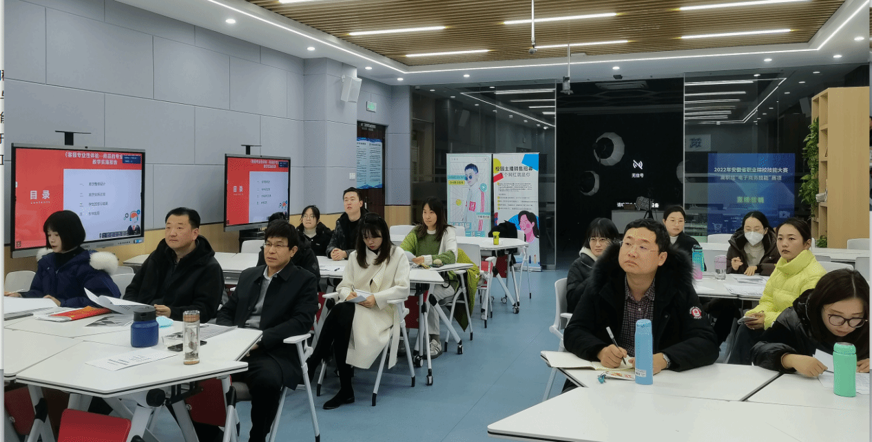 1月10日中午,管理学院在零售全场景产教融合基地(103实训室)举办教学能力大赛,学院领导、相关专家和各团队成员和年轻教师们参会。