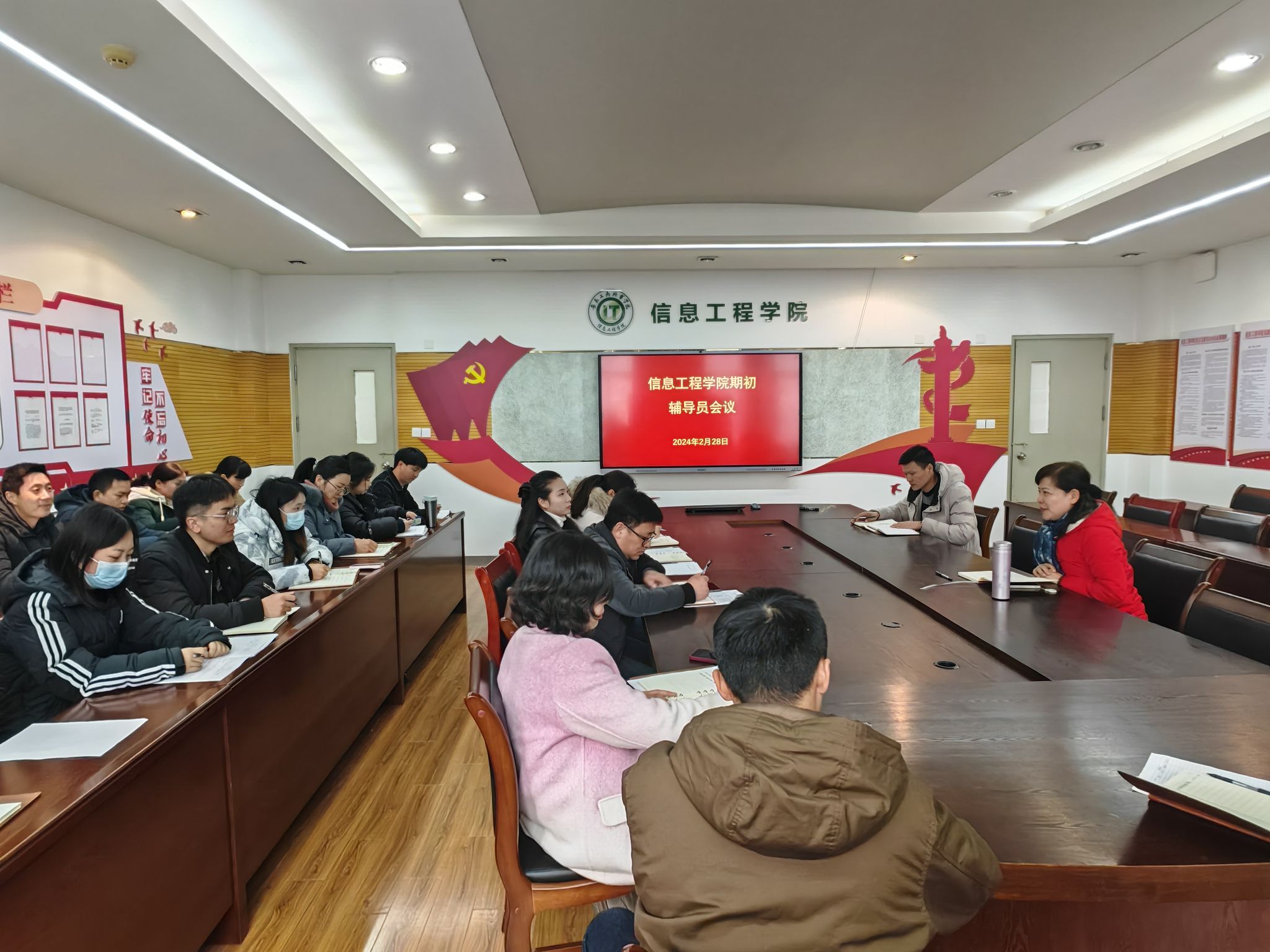 新学期,新气象,新作为。为进一步做好期初各项工作,扎实推进学生管理工作,2月28日下午,信息工程学院召开期初辅导员工作会议,学院全体辅导员参加会议,会议由学院党总支书记张静雯主持。