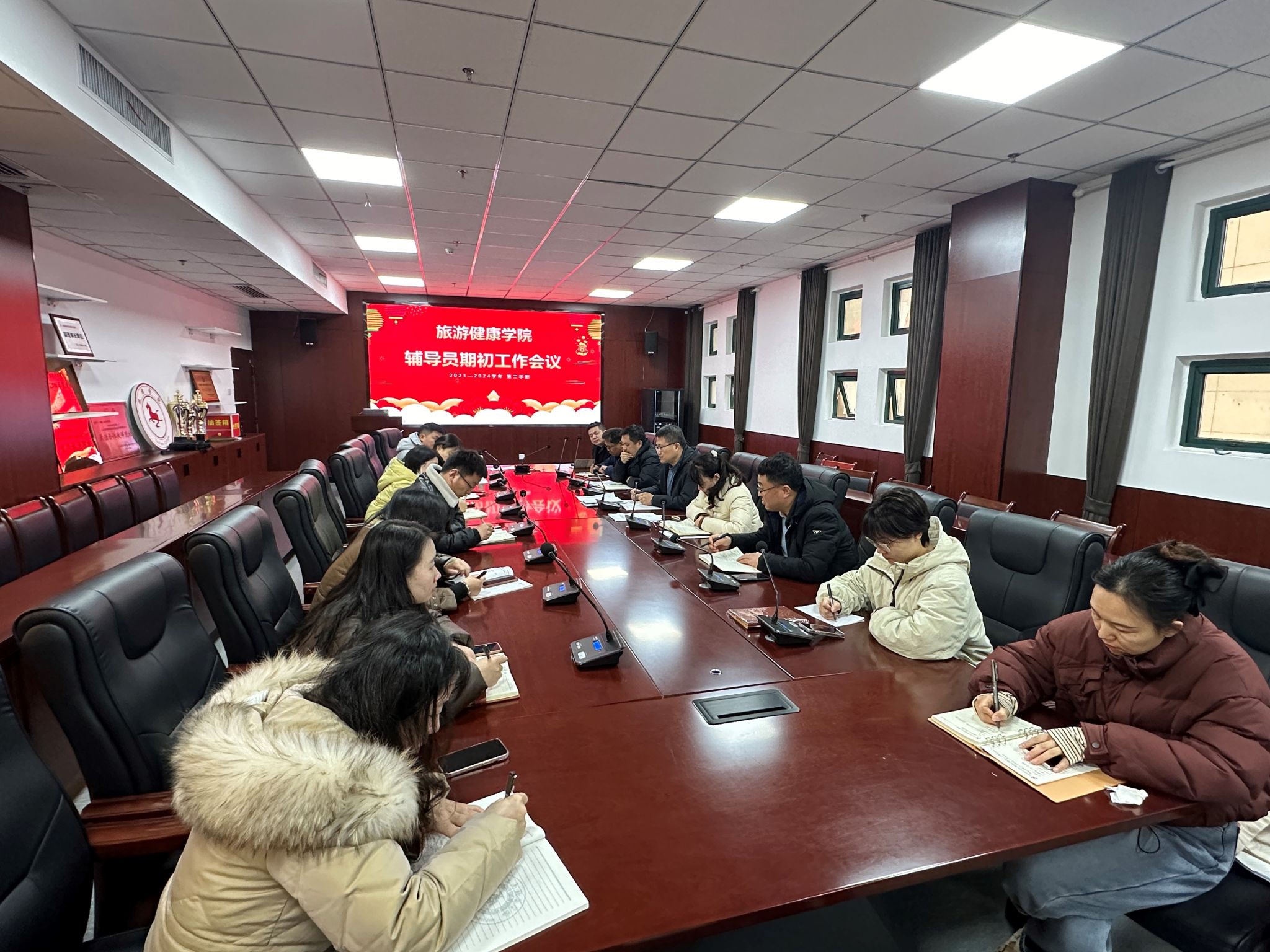 为扎实推进新学期学生工作有序开展,2月26日中午,旅游健康学院在三楼会议室召开全体辅导员大会,旅游健康学院党总支书记杨锐、党总支副书记刘燕、副院长王彦龙和全体专兼职辅导员参加,会议由刘燕主持。
