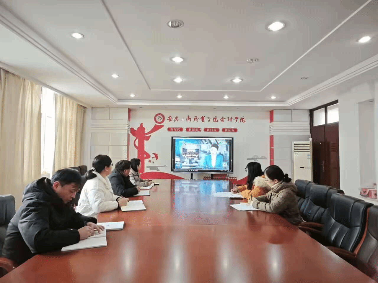 2024年2月28日下午,会计学院党总支在明德楼二楼党建会议室召开二级理论学习中心组学习会议,集体学习了习近平总书记在中共中央政治局第十一次集体学习时、二十届中央纪委三次全会上、二〇二四春节团拜会上的重要讲话精神,学习2024年全国教育工作会议精神,学习安徽省十四届人大二次会议精神和《中国共产党纪律处分条例》等。学习会议由学院党总支书记赵艳主持,全体党总支委员参加会议。
