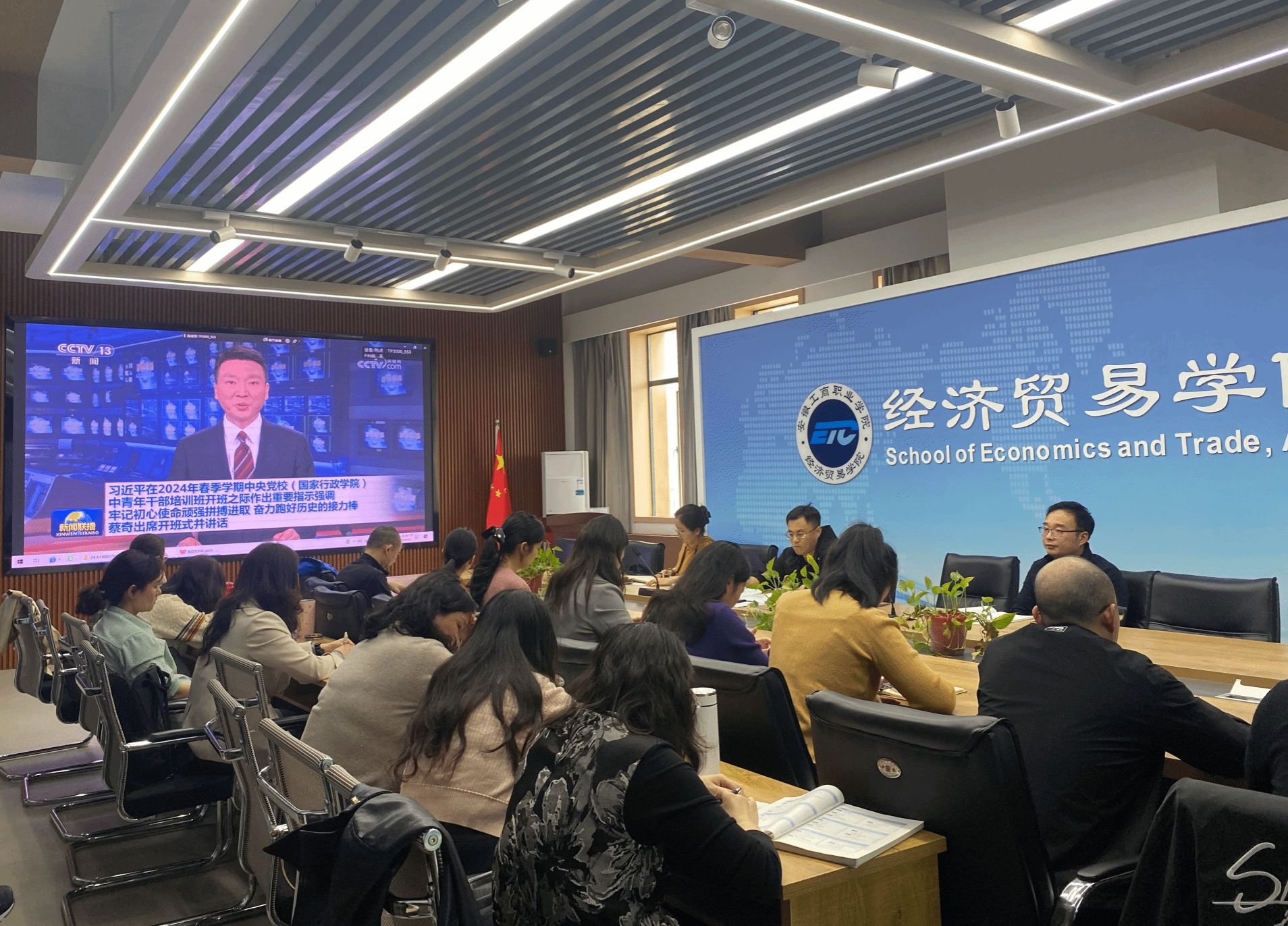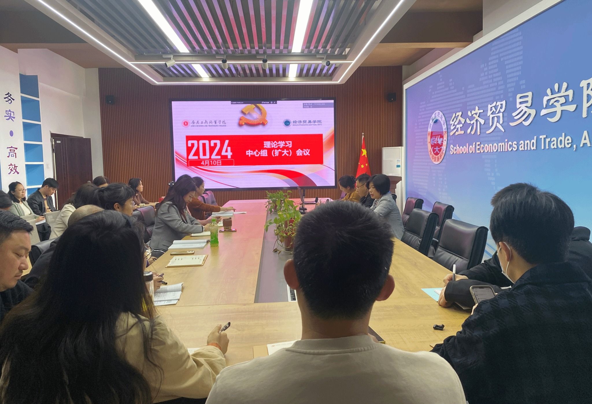 根据学校党委部署以及经济贸易学院党总支的工作安排,4月10日中午,经济贸易学院党总支在5楼教师能力提升中心召开理论学习中心组学习(扩大)会议,会议由党总支书记边昊主持,全体教职工参加会议。
