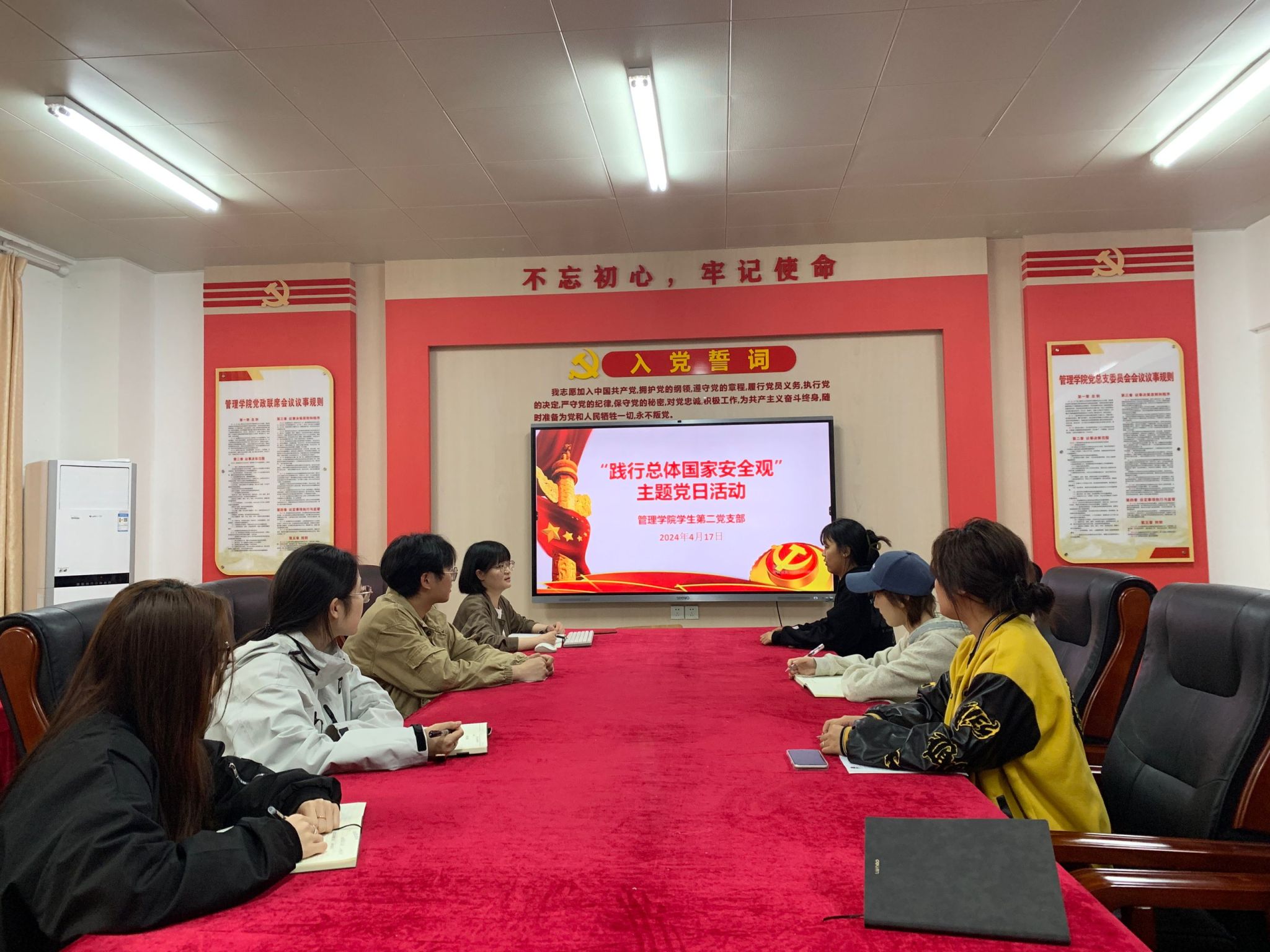 为深入学习贯彻习近平总书记关于总体国家安全观重要论述,进一步增强师生党员国家安全意识及维护国家安全的自觉性,4月17日中午,管理学院学生第二党支部以4月份主题党日活动为契机,开展“学习理解贯彻总体国家安全观”专题学习研讨。党支部书记毕筱菁主持会议,支部全体师生党员参加学习。