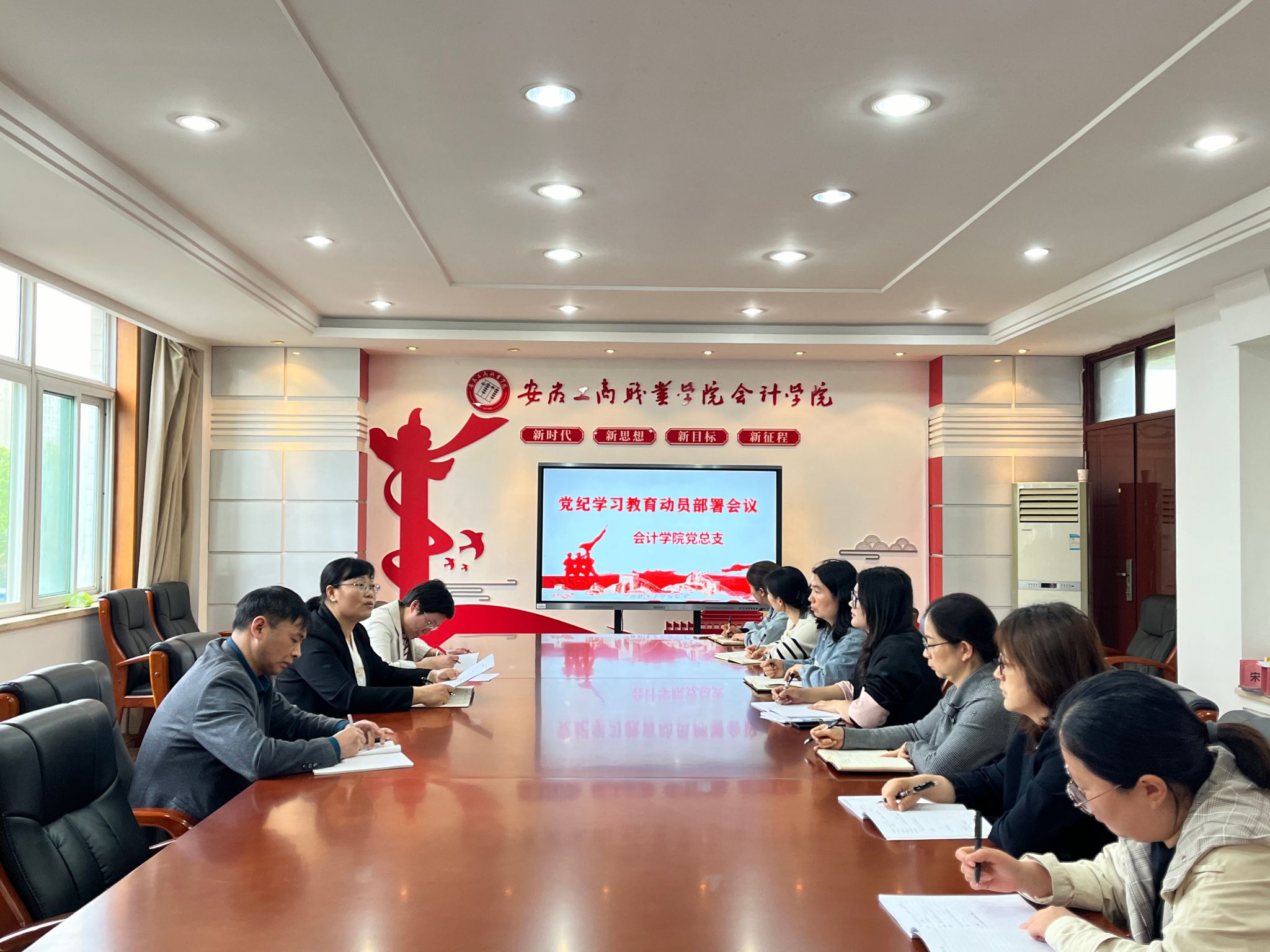 为深入学习贯彻习近平总书记关于党纪学习教育的重要讲话重要指示精神和中央党的建设工作领导小组会议精神,传达落实学校党委具体工作要求,2024年4月17日会计学院党总支于明德楼二楼党建会议室召开党纪学习教育动员部署会议。会计学院党总支书记赵艳、副书记李峰和全体党支部书记参加会议。